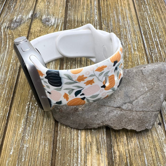 Autumn Fall Design Pumpkin Silicone Band, Apple Watch Compatible 38/40/41mm, 42/44/45mm, Series