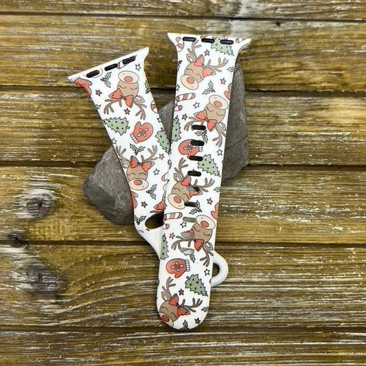 Christmas Favorites Watch Band for Apple Watch Silicone Reindeer and Candy Holiday Winter 38mm 40mm 41mm 42mm 44mm 45mm